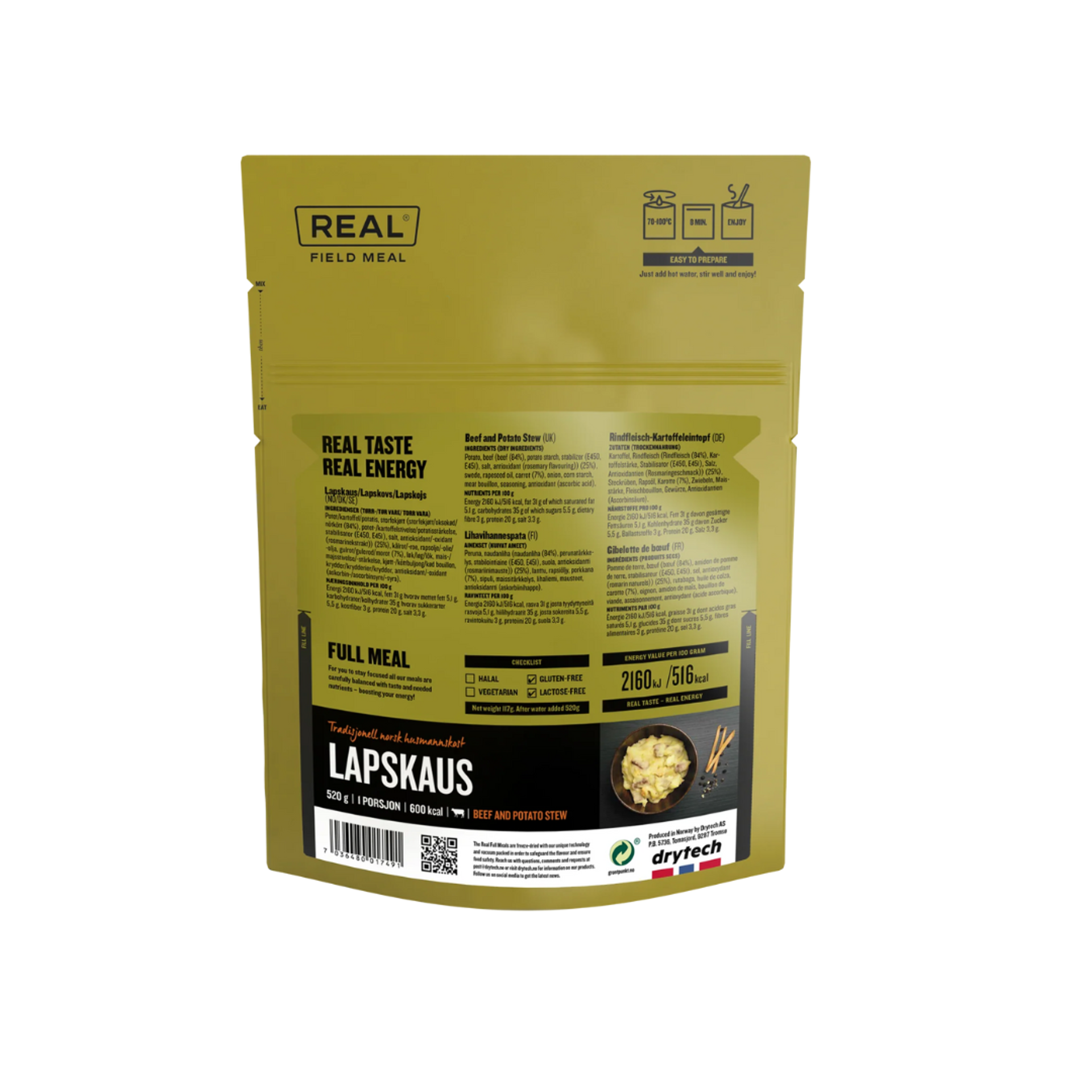 Experience the intense flavors ofBeef and Potato Stew from Real Field Meal. This is the perfect dish for outdoor adventure enthusiasts who don’t want to compromise on taste. Juicy beef and tender potatoes come together in a hearty meal, providing energy and comfort after an intense day. The convenient packaging makes meal preparation quick and easy, wherever you are. Enjoy every bite and discover delicious adventures with Real Field Meal!