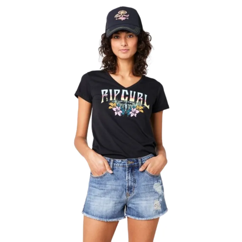 Rip Curl Womens Block Party V Tee in Black