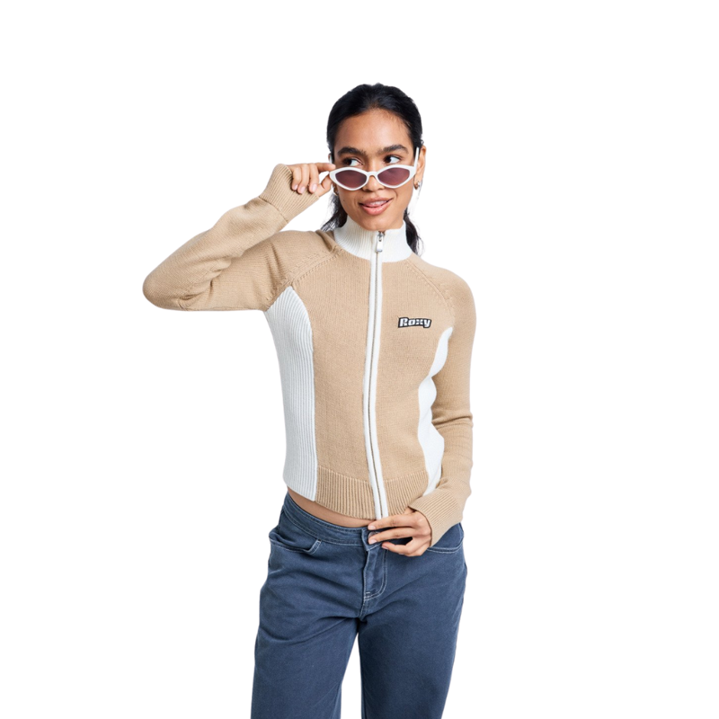 Roxy Womens Chloe Kim Blocked Mock Neck in Travertine